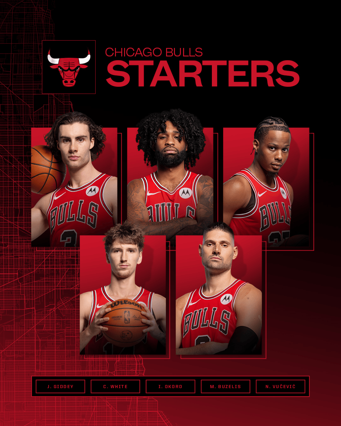 公牛首發(fā):吉迪、板公比科比-懷特、牛首奧科羅、發(fā)吉布澤利斯、武切維奇