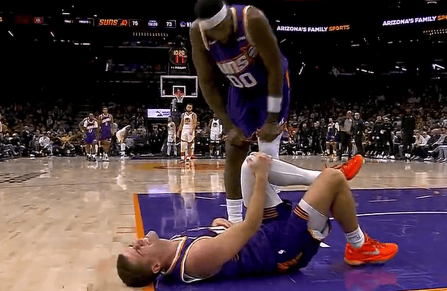 [流言板]吉萊斯皮防守和庫明加膝蓋相撞,隨后直接返回更衣室