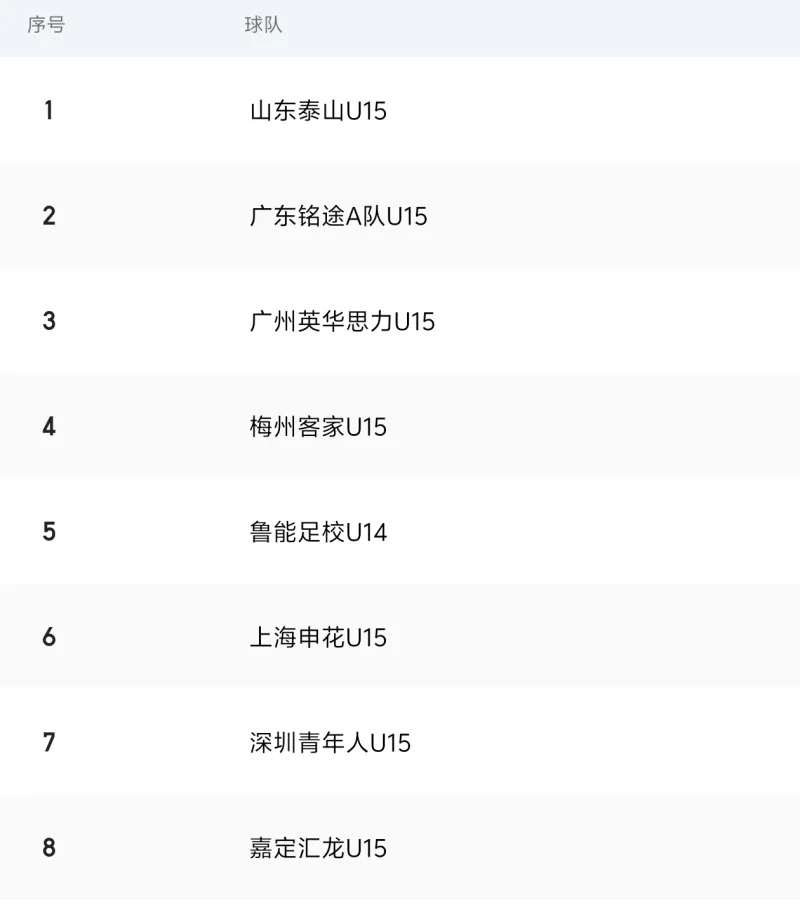 為何今年已經(jīng)在U15中青賽已經(jīng)踢完的情況下。第二,三,四名無一人入選。前八名的球隊(duì)中僅有三支球隊(duì)的球員入選國少(包括深圳青年人的劉宇洋)。