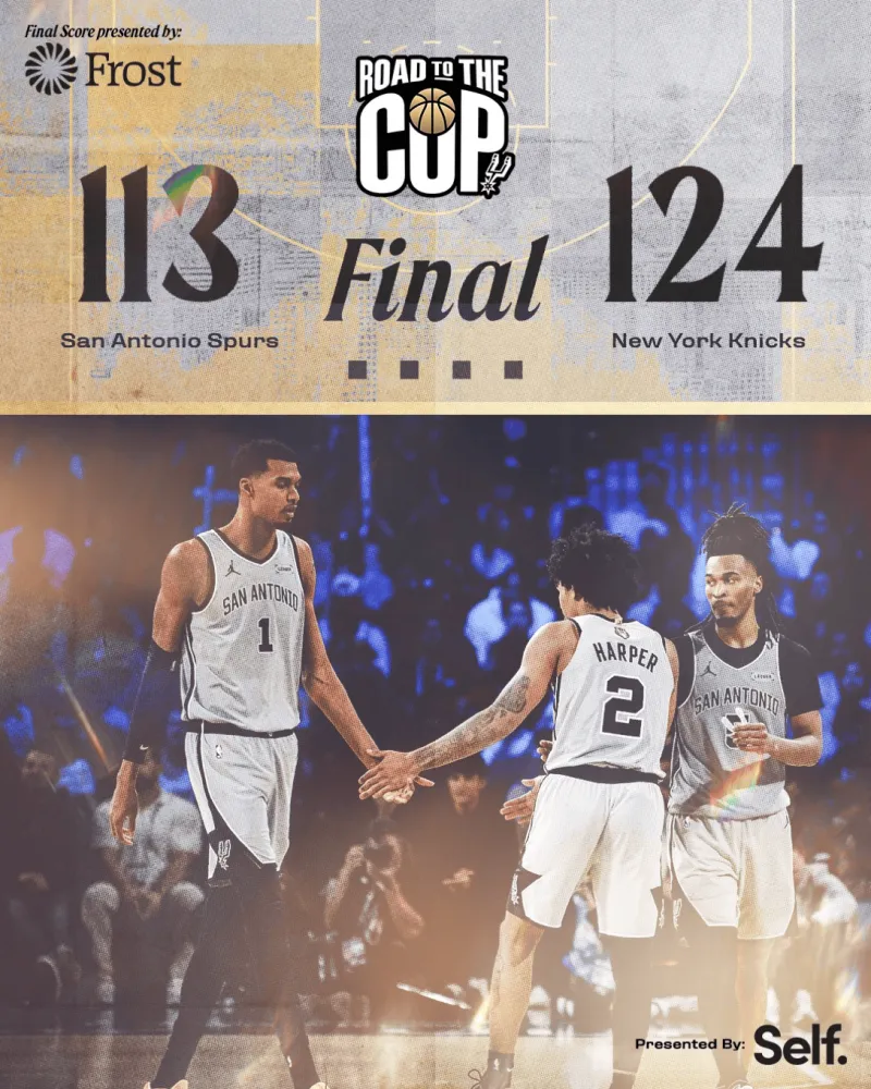 虎撲12月17日訊 今日NBA杯總決賽,馬刺113-124不敵尼克斯。媒曬