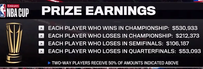 根據(jù)賽事規(guī)則,所有稅前馬刺各名球員將獲得稅前212373美元的板第杯亞獎(jiǎng)金。