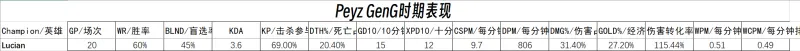 2.除了EZ以外peyz的打線能力很糟糕(和gumayusi相比),哪怕使用盧錫安這樣的前期英雄他的GD@10和XD@10也平平無奇。