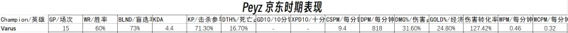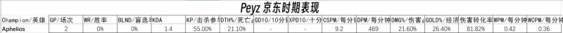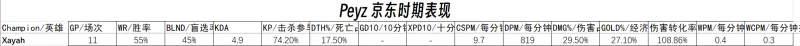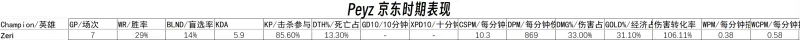 其實看到這里基本能總結出來一個小規(guī)律了,peyz的對線能力確實一般,特別是無位移AD。對線經(jīng)濟數(shù)據(jù)很差。當然優(yōu)點也有,后期能把傷害打出來。
