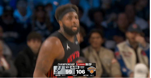 虎撲12月17日訊 NBA杯決賽,尼克斯對陣馬刺的搶下前場比賽正在進行中。