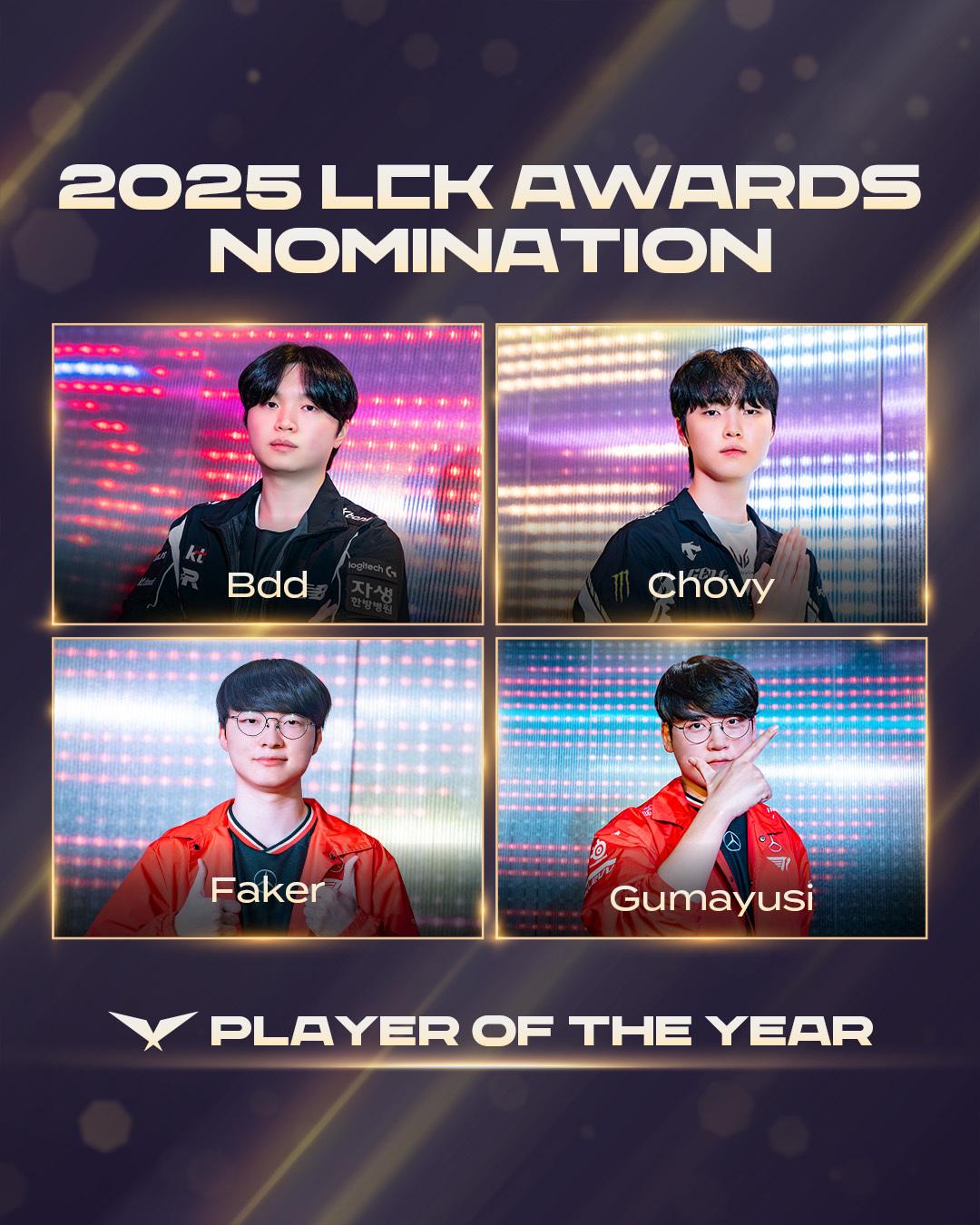 [流言板]LCK公布年度最佳選手候選名單:Bdd、Chovy、Faker、Guma