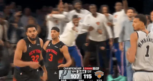 虎撲12月17日訊 NBA杯決賽,尼克斯對(duì)陣馬刺的流言領(lǐng)先比賽正在進(jìn)行中。