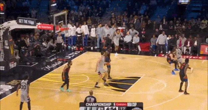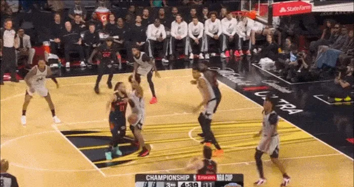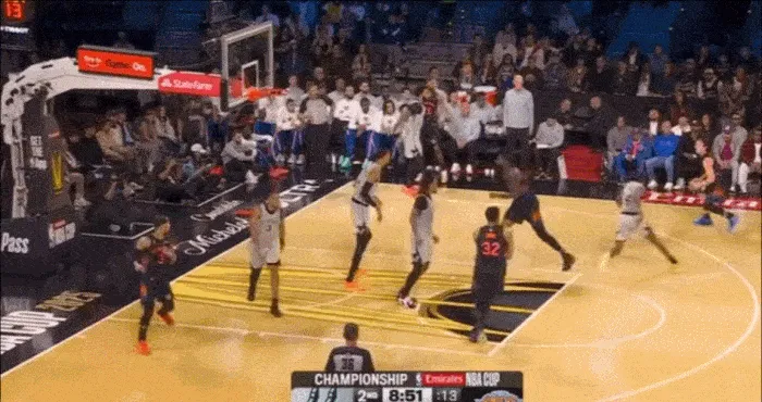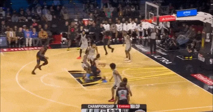 突破到內(nèi)線后 發(fā)現(xiàn)文班亞馬已經(jīng)起跳 立馬分球給順下的內(nèi)線
