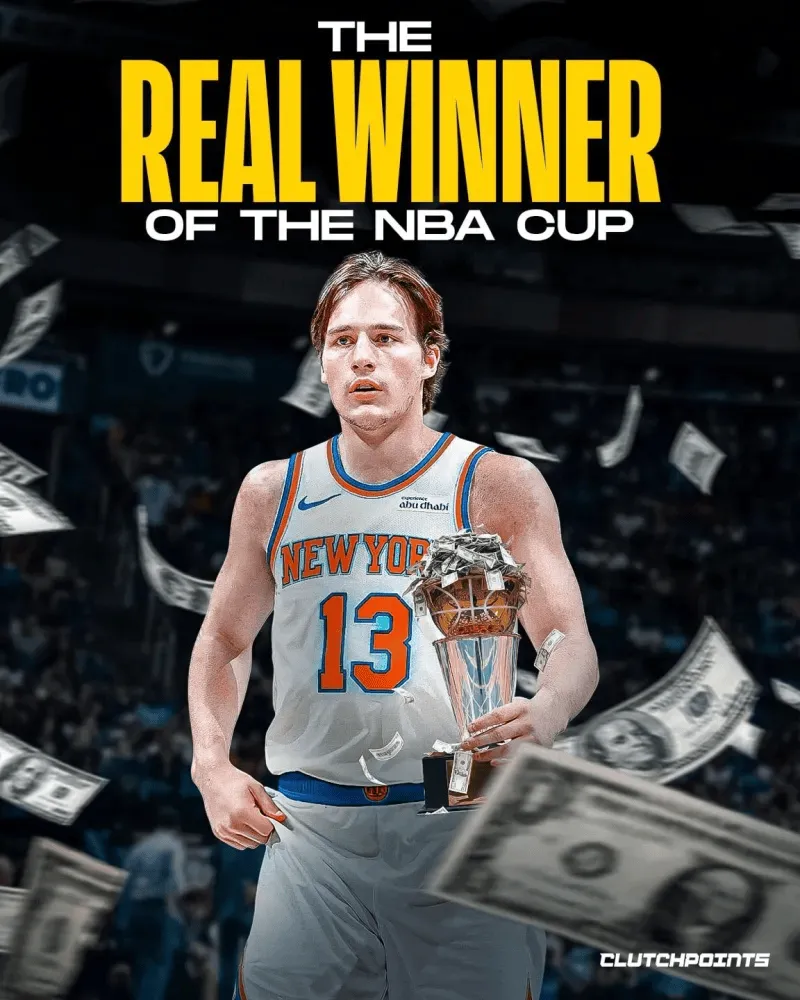 板凳奇兵!尼克斯奪得本屆NBA杯總冠軍。科萊克出戰(zhàn)20分鐘,投籃9中5、三分4中2得到14分5籃板5助攻。各項數(shù)據(jù)均為本賽季新高,也是他第一次得分上雙。