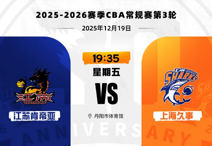 2025年12月19日,2025-2026賽季CBA聯(lián)賽常規(guī)賽第3輪,上海久事客場挑戰(zhàn)江蘇肯帝亞。