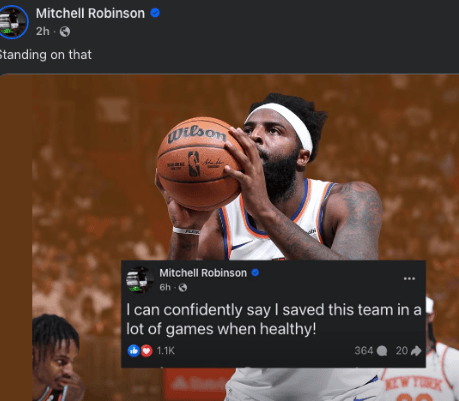 賽后,米切爾-羅賓遜更新個人社媒:我可以很自信地說在我健康的時候我拯救了球隊很多次。