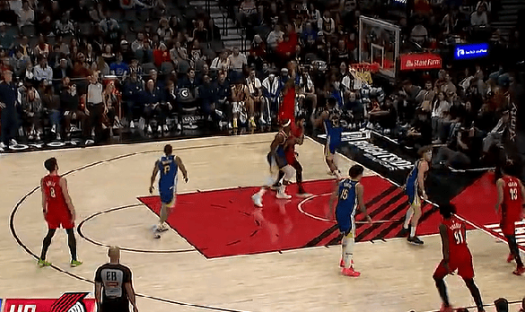 NBA常規(guī)賽,勇士對(duì)陣開(kāi)拓者的接球比賽正在進(jìn)行中。
