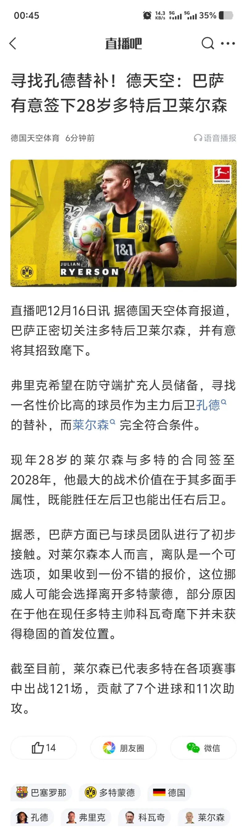 尋找孔德替補!尋找下歲德天空:巴薩有意簽下28歲多特后衛(wèi)萊爾森由薩村囧JS 發(fā)表在巴薩專區(qū) https://bbs.hupu.com/barcelona