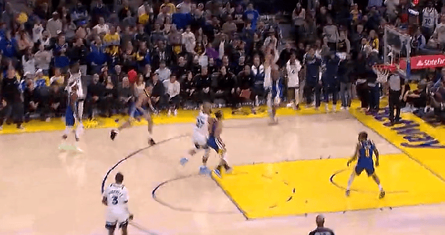 NBA常規(guī)賽,勇士對陣森林狼的剩秒比賽正在進行中。