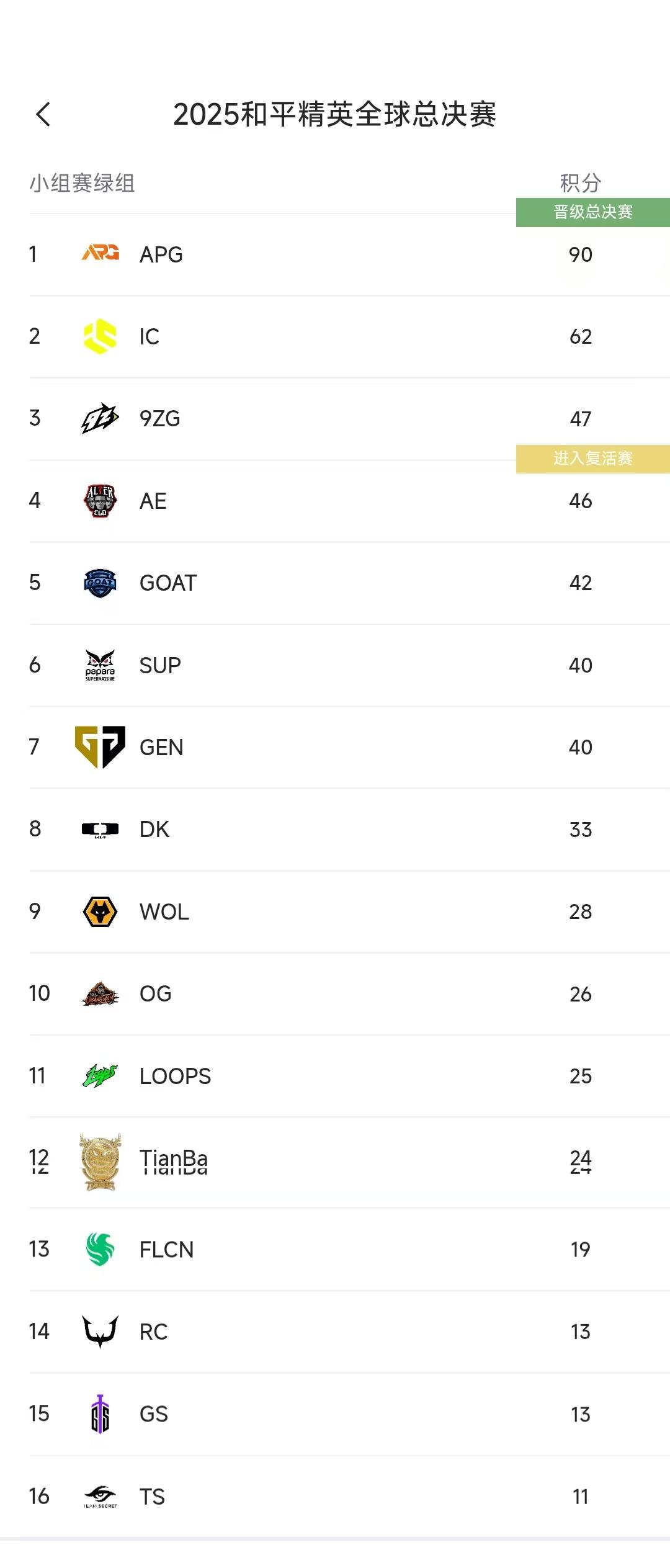 虎撲11月28日訊 11月28日積分榜:Tianba首日僅拿到24分,排名岌岌可危,日積APG以90分?jǐn)鄬宇I(lǐng)先,分榜G分IC拿到62分排在第二,首日9zG以47分排名第三。僅拿具體積分如下:
