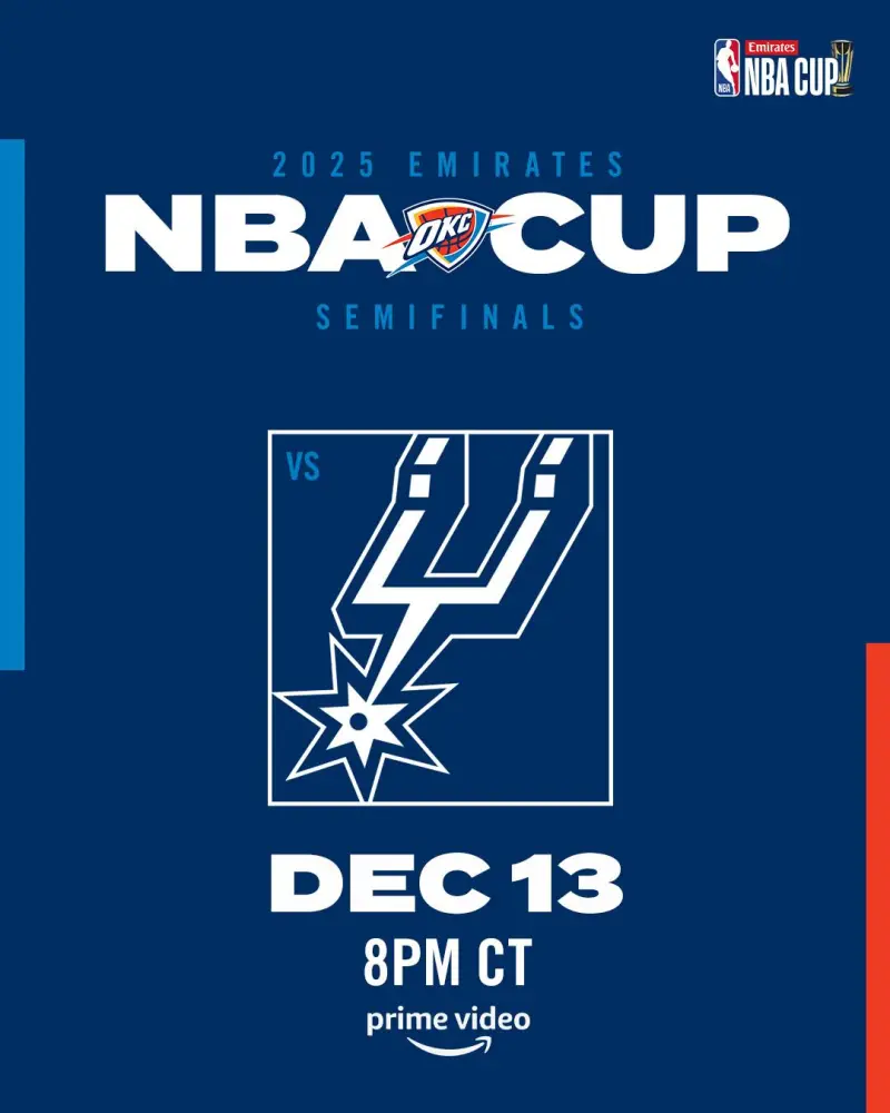 本場(chǎng)比賽取勝后,決賽馬刺將在NBA杯半決賽迎戰(zhàn)雷霆。