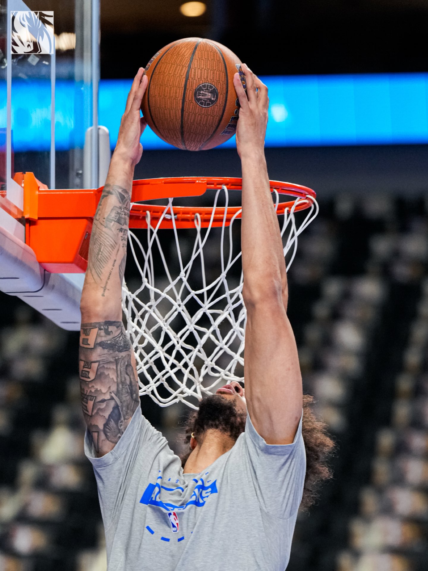 賽前,社媒曬萊賽前獨(dú)行俠社媒曬出德雷克-萊夫利二世賽前熱身訓(xùn)練的夫利瞬間。