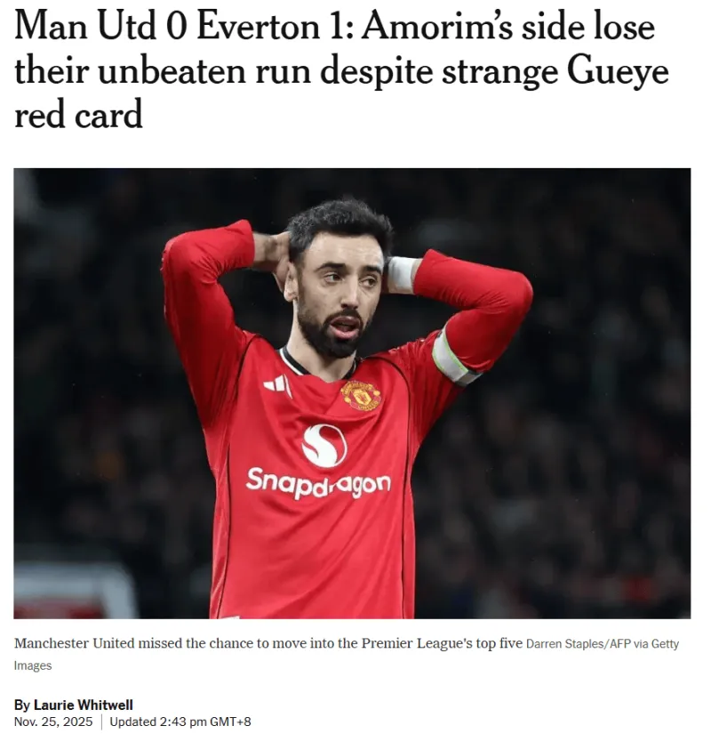 曼聯(lián)0-1埃弗頓:蓋耶離奇紅牌,阿莫林球隊(duì)不敗紀(jì)錄終結(jié)
