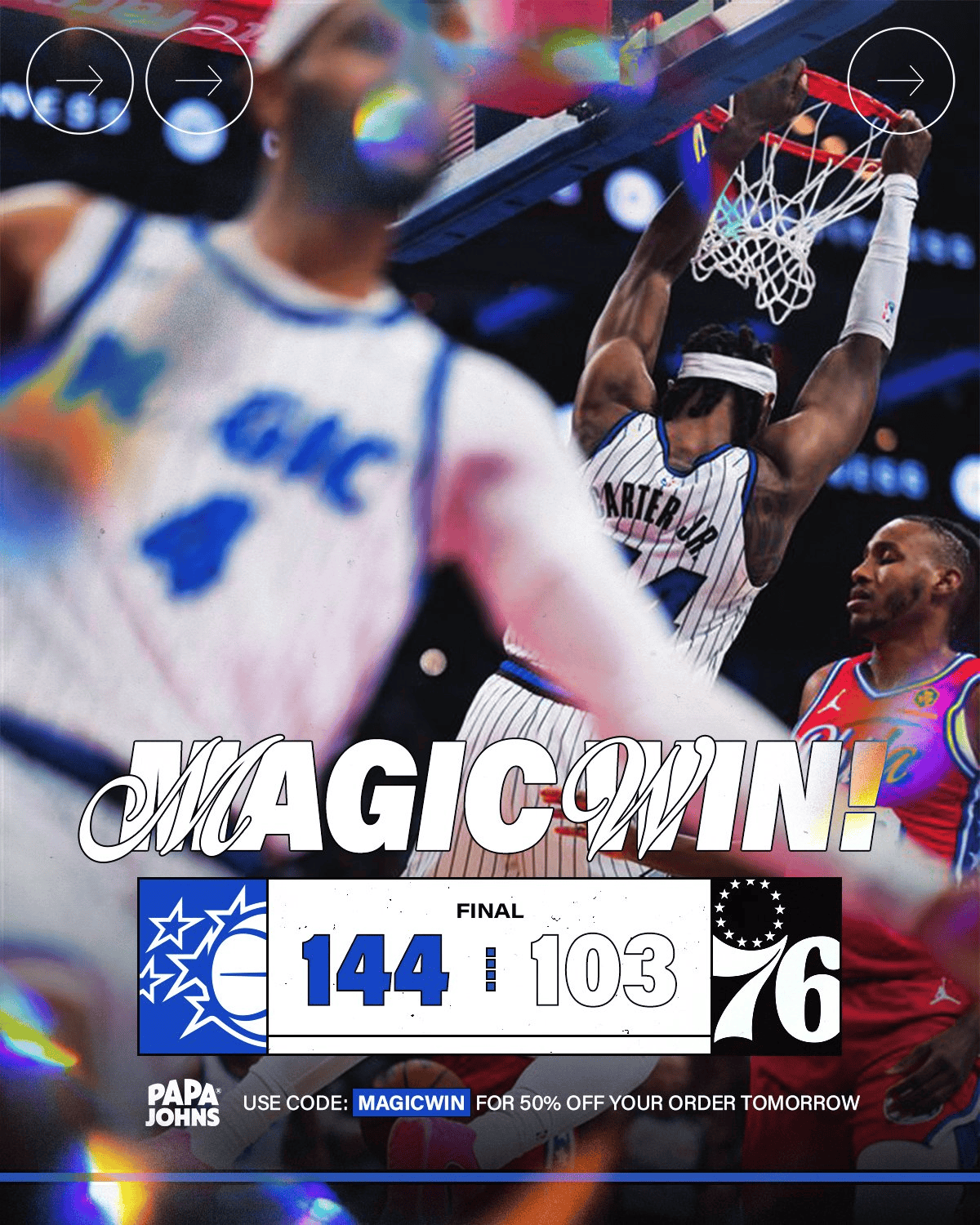 虎撲11月26日訊 今日NBA杯小組賽,魔術(shù)144-103大勝76人。日有人