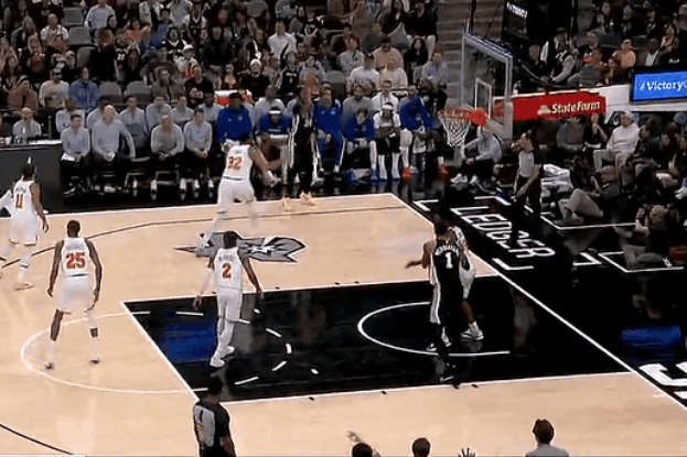 虎撲01月01日訊 NBA常規(guī)賽,尼克斯對(duì)陣馬刺的底角袋馬比賽正在進(jìn)行中。