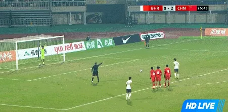 中國禁區(qū)內(nèi)被絆倒獲點,萬項點射破門,中國3