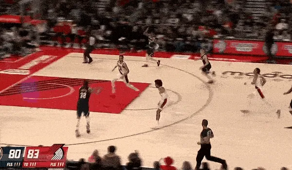 下面兩球就是經(jīng)典的底線空切(baseline backdoor cut),利用約基奇正面吸引力,潛入底線得分,令人防不勝防,這種需要很強(qiáng)的踩點(diǎn)跑位意識(shí)。