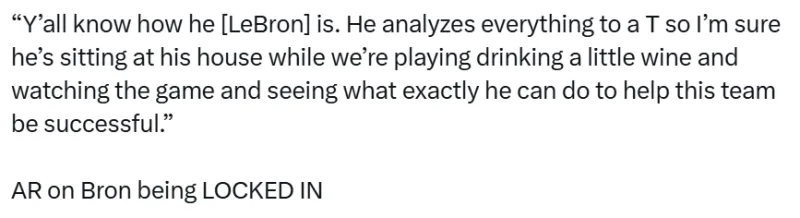 賽后,湖人球員奧斯汀-里夫斯接受了記者采訪,并談到了勒布朗-詹姆斯。
