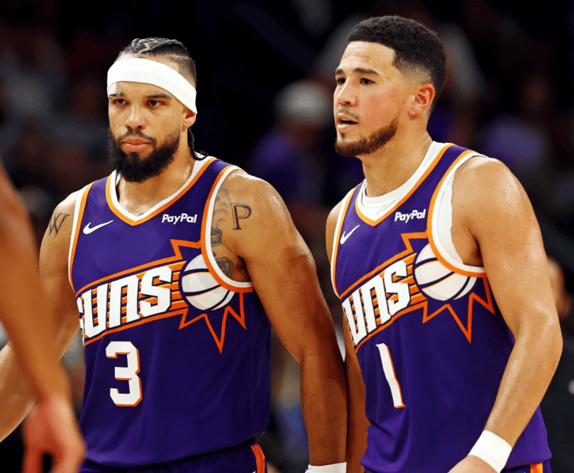 在過(guò)去5場(chǎng)比賽中,狄龍場(chǎng)均24.4分命中率48.5%、三分34.1%。,布克場(chǎng)均20.8分命中率37.6%、三分23.1%。