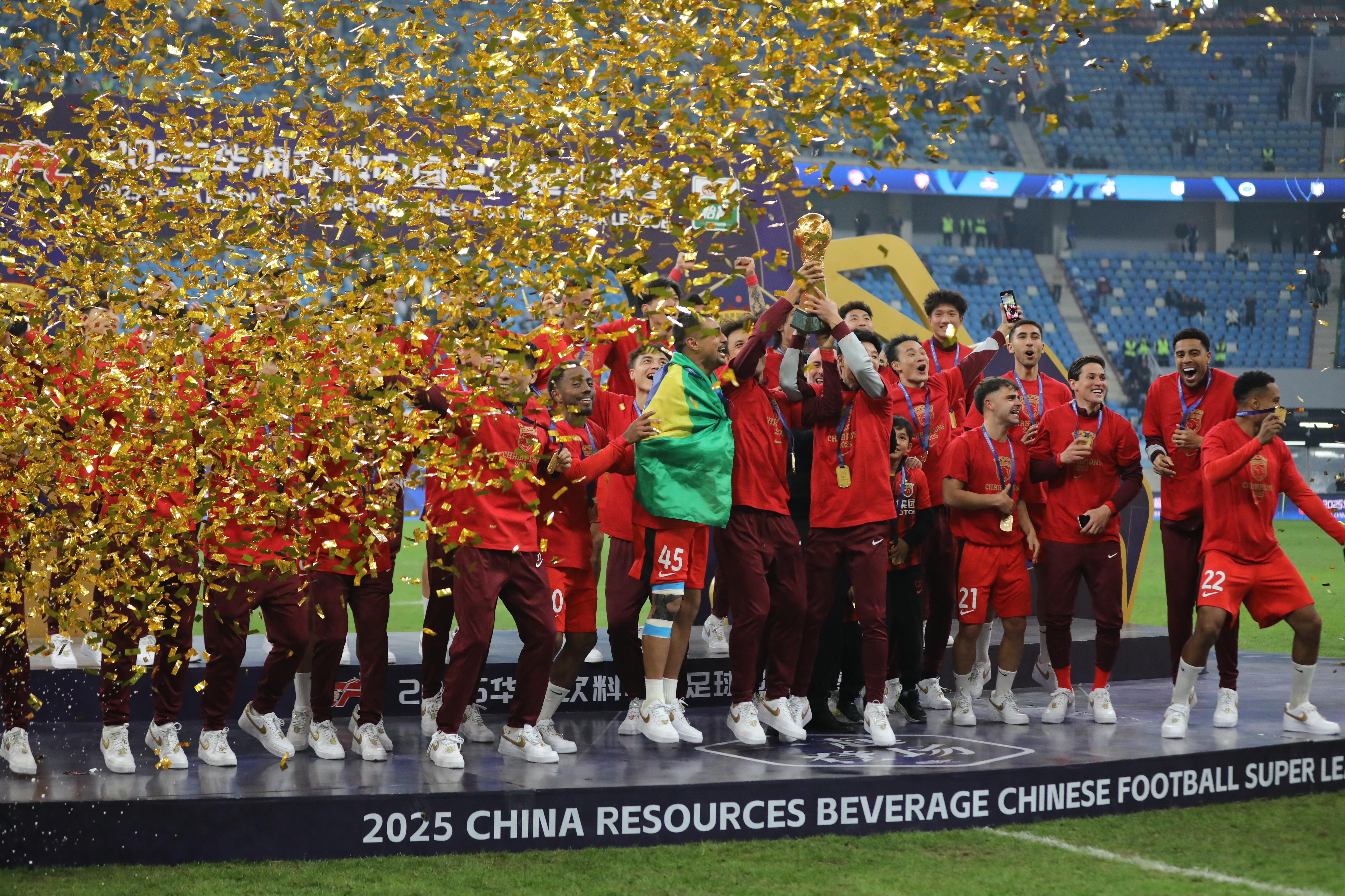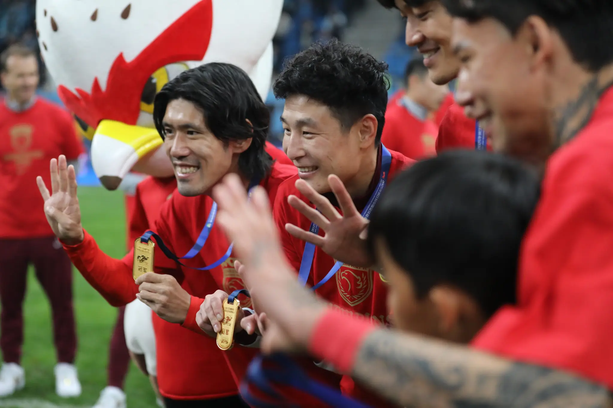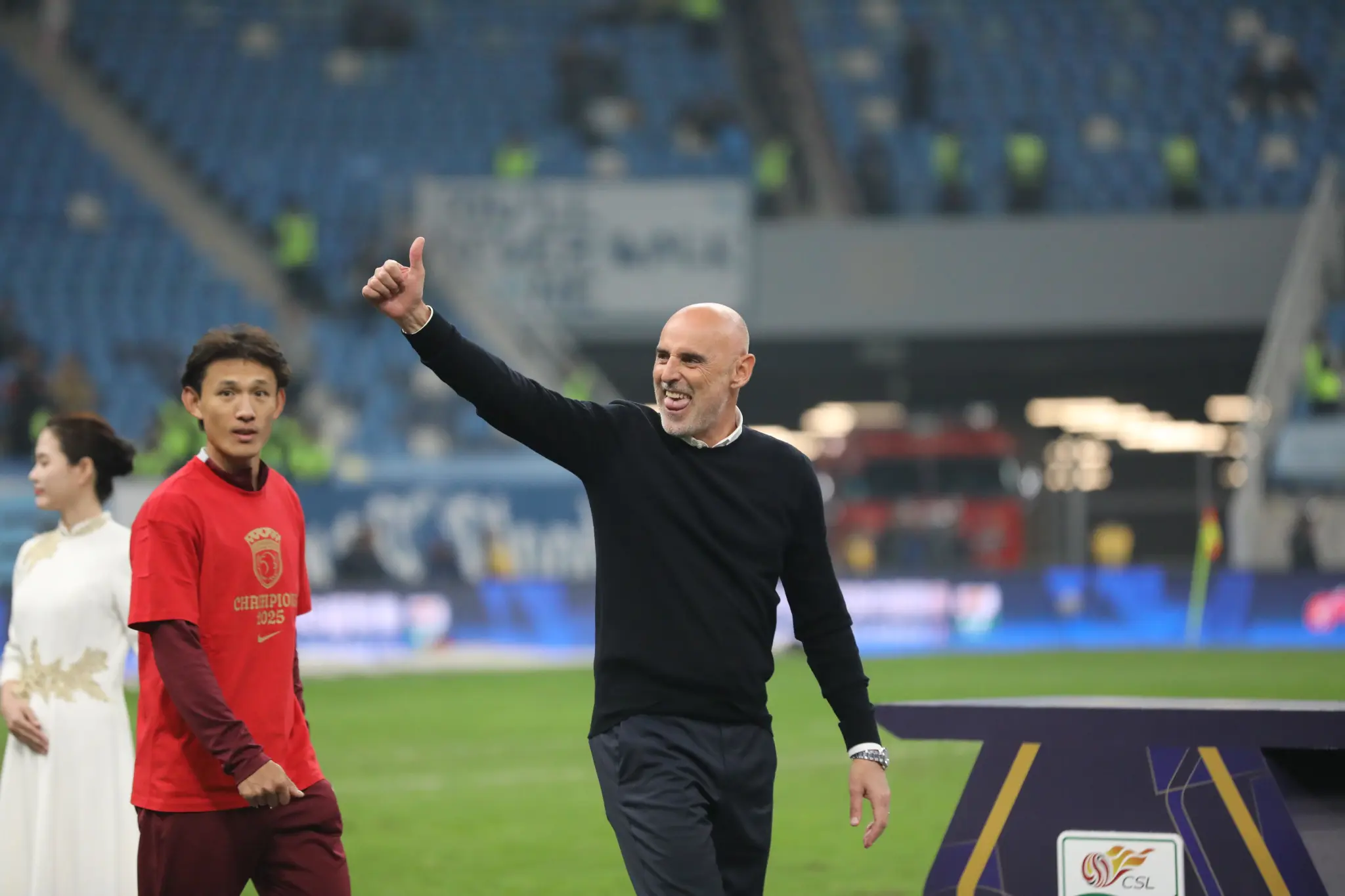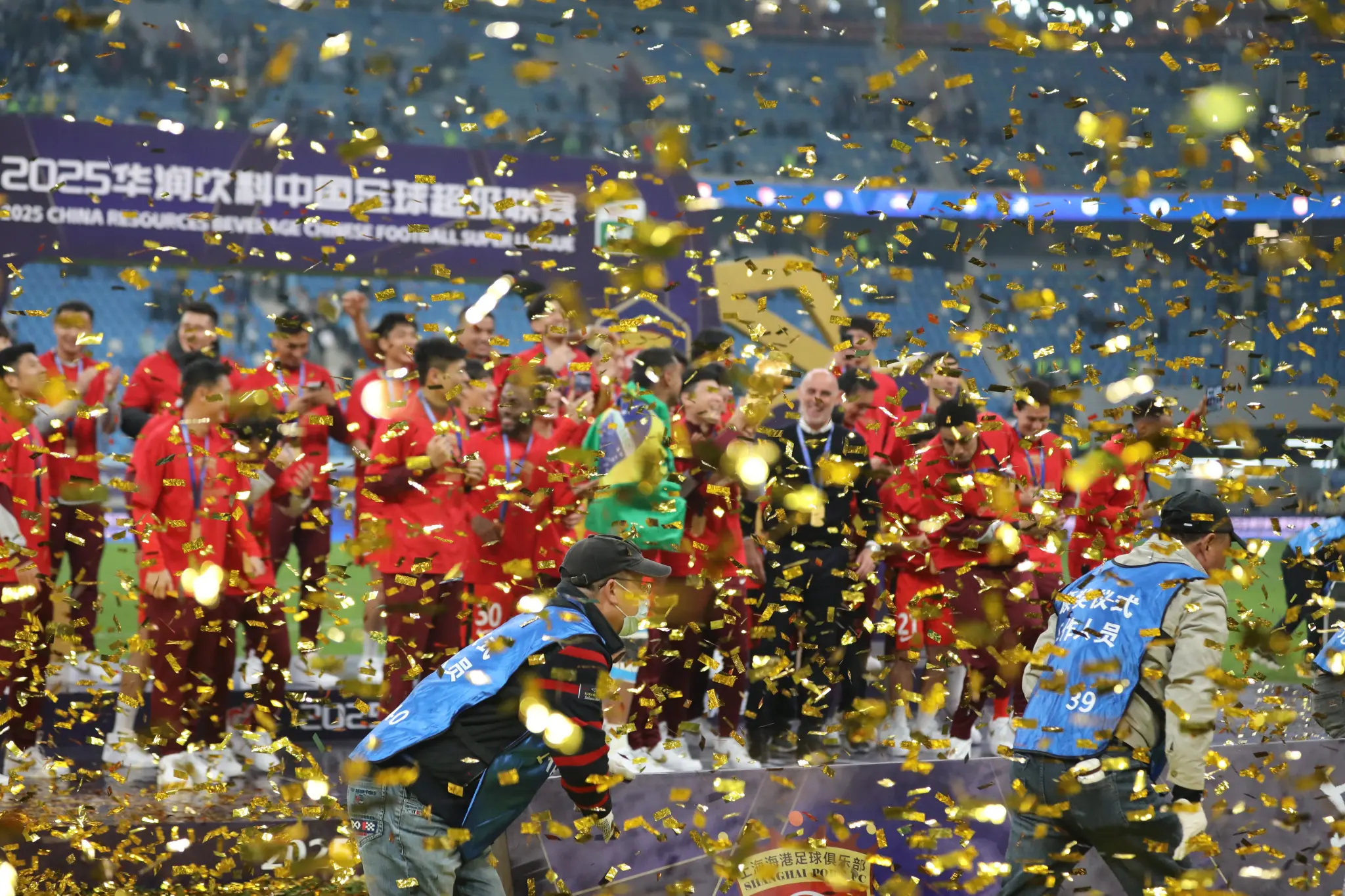中超末輪,上海海港客場(chǎng)1-0戰(zhàn)勝大連英博,海海奪得隊(duì)史第四座中超冠軍,港奪賽后大連梭魚灣球場(chǎng)舉行冠軍頒獎(jiǎng)捧杯儀式。得隊(duì)