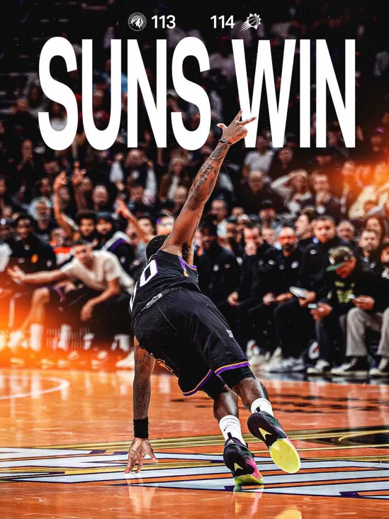 賽后,配文太陽(yáng)社媒分享球隊(duì)獲勝海報(bào)。太陽(yáng)
