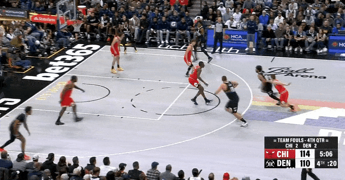 虎撲11月18日訊 NBA常規(guī)賽,掘金對陣公牛的投進比賽正在進行中。