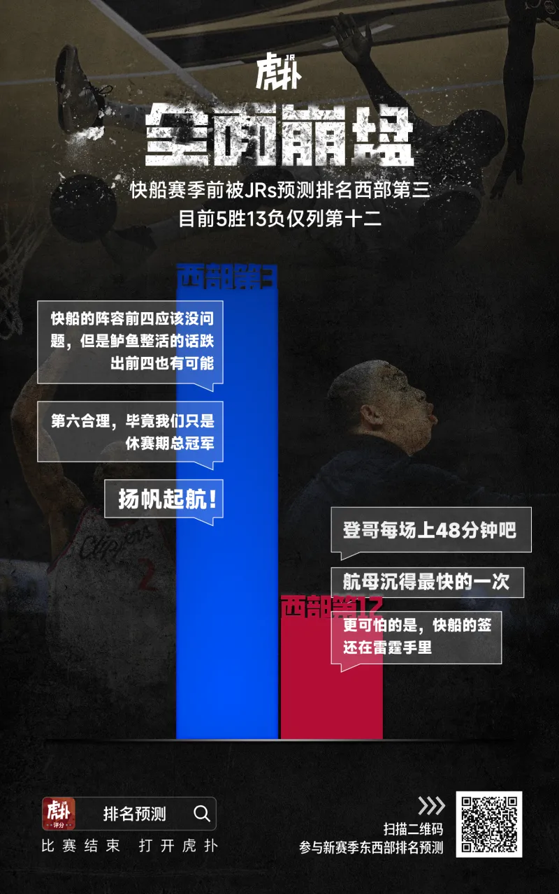 目前NBA常規(guī)賽已經(jīng)進(jìn)行了一個(gè)月多的時(shí)間,快船的季前僅列戰(zhàn)績僅為5勝13負(fù),僅排名西部第十二位。預(yù)測月后