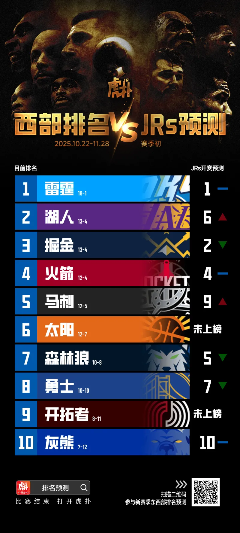 (上圖為當(dāng)前西部排名vsJRs賽季前預(yù)測西部排名的對(duì)比)