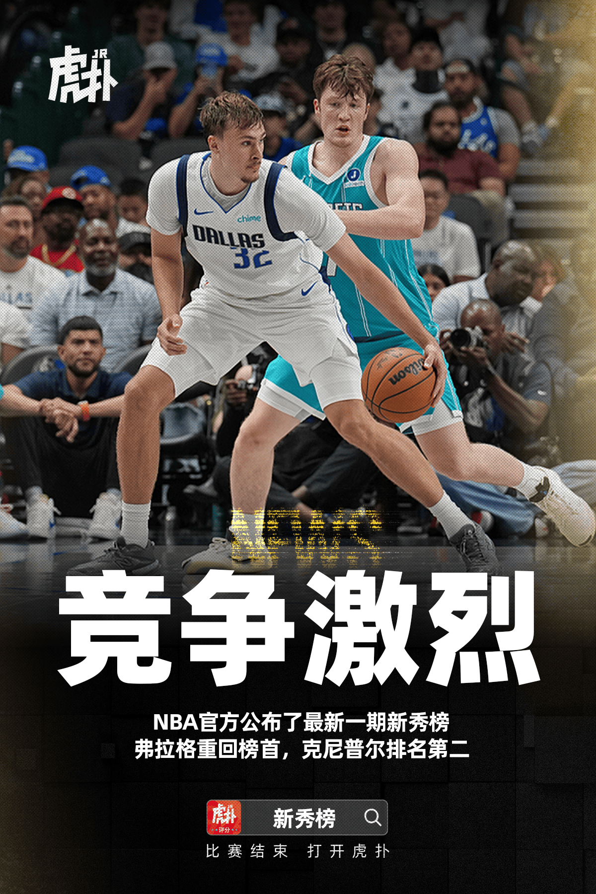 虎撲12月11日訊 今日,NBA官方更新了最新一期的格升新秀榜: