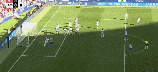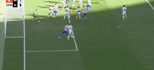 魯杰里射門被擋,魯杰里射科克補射貼地斬破門,門被馬競