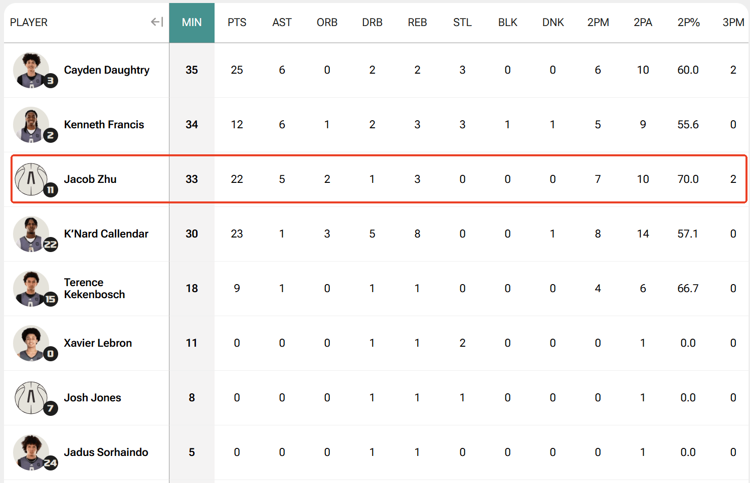 朱正本場比賽得到了22分3籃板5助攻的流言聯(lián)賽數(shù)據(jù)。