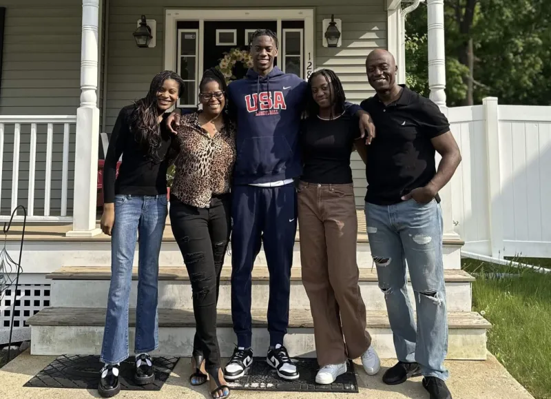 真正的轉(zhuǎn)變發(fā)生在疫情期間。那時(shí)候健身房都關(guān)了,很多公園為了防止聚集還把籃筐給卸了,想找個(gè)地方打球難如登天。AJ當(dāng)時(shí)的教練喬·桑德斯,好不容易在羅德島紐波特的一個(gè)海軍基地找到了一個(gè)球場(chǎng),離他們?cè)诓剂_克頓的家有大概50英里遠(yuǎn)。艾斯幾乎天天開車送13歲的AJ去訓(xùn)練。桑德斯教練手下有從七年級(jí)到十年級(jí)不等的球員,他通常把場(chǎng)地分成“年輕組”和“年長(zhǎng)組”。艾斯直接跟教練說,把AJ放到年長(zhǎng)組那邊,讓他去對(duì)位一個(gè)16歲、身高1米98、體重將近100公斤的孩子,名叫馬蒂尼·卡姆加。