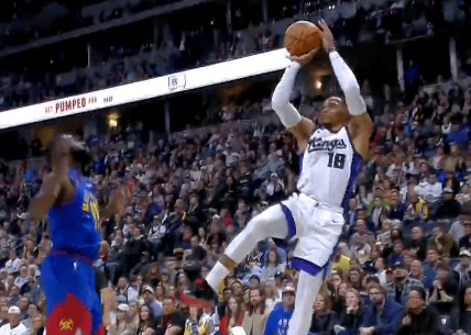第四節(jié)比賽最后40秒,跳投威少金雞獨(dú)立后仰跳投命中,命中末節(jié)國王還剩36秒領(lǐng)先掘金6分鎖定勝局??撤?/p>