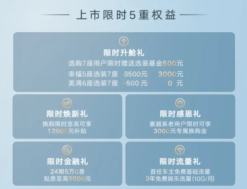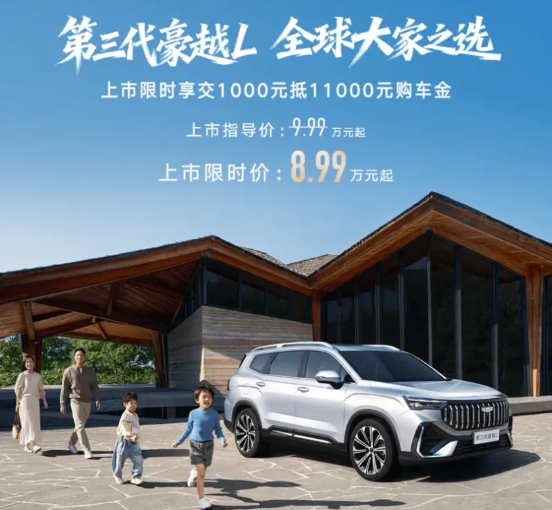 虎撲11月27日訊 新款吉利豪越 L 已上市,共推出 4 款車型,總新官方指導(dǎo)價(jià)為 9.99 萬(wàn)至 12.99 萬(wàn)元,款吉限時(shí)優(yōu)惠價(jià) 8.99 萬(wàn)至 11.99 萬(wàn)元。利豪作為年度改款車型(官方稱之為第三代),越L元起新款豪越 L 依舊定位于中型 SUV 市場(chǎng)。上市時(shí)萬(wàn)