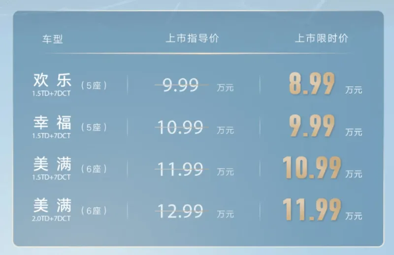 美滿6座:11.99萬(wàn)元