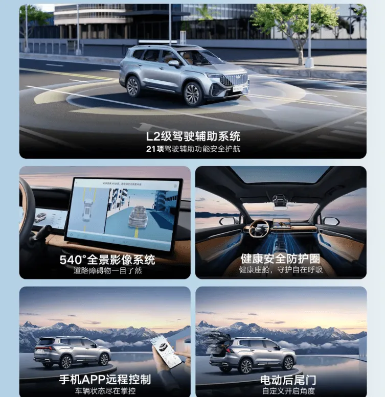 智能化配置方面,次頂配和頂配車型搭載 L2 級(jí)智能駕駛輔助系統(tǒng),涵蓋全速域自適應(yīng)巡航、前碰撞緩解輔助系統(tǒng)、城市預(yù)碰撞系統(tǒng)、車道偏離預(yù)警、車道保持輔助、前后碰撞預(yù)警、智能遠(yuǎn)光燈調(diào)節(jié)、后方交叉緊急報(bào)警以及 540 度全景影像(含透明底盤)等多項(xiàng)功能。