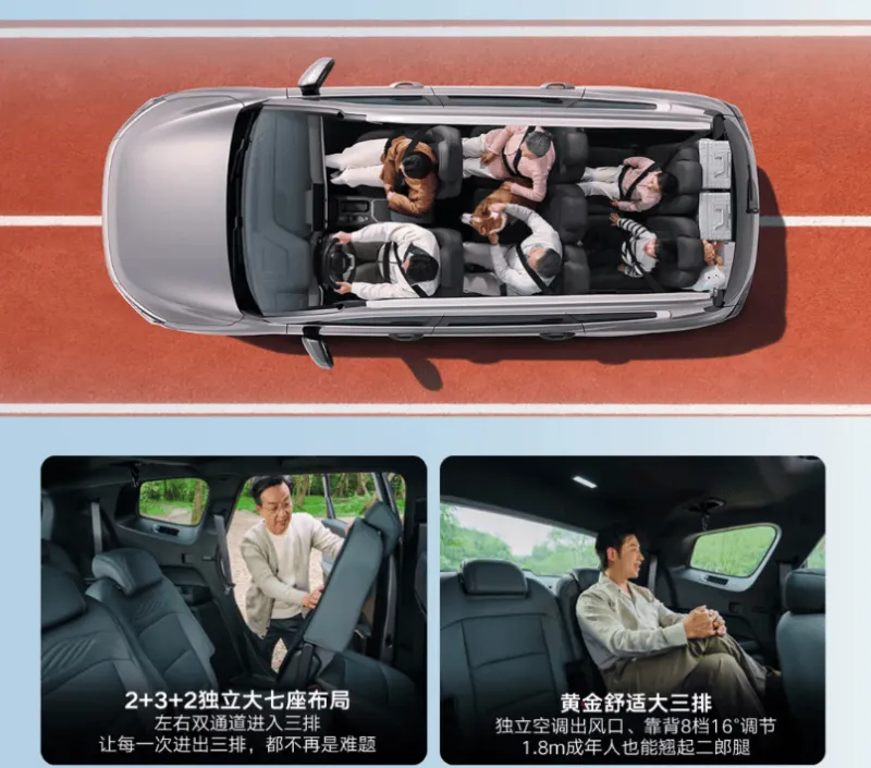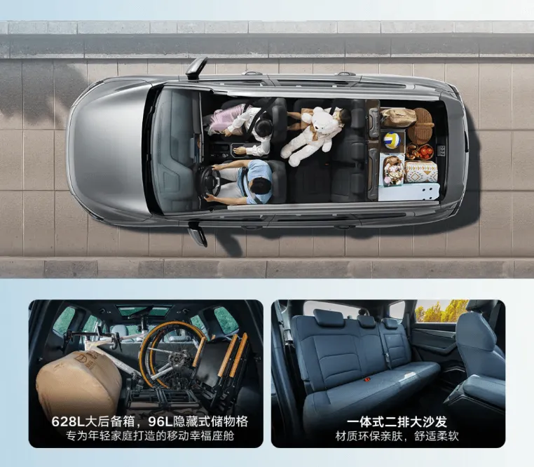 選裝 7 座版本后,第三排座椅支持純平放倒,配合可折疊的第二排座椅,后備廂容積最大可擴(kuò)展至 2050 升。