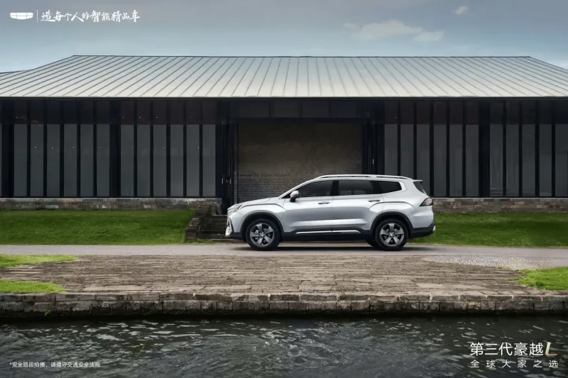 從車身側(cè)面來(lái)看,新款豪越 L 保持了標(biāo)準(zhǔn)的 SUV 結(jié)構(gòu),前后側(cè)翼子板上的內(nèi)凹式筋線設(shè)計(jì)營(yíng)造出寬體視覺效果。高配車型配備全新設(shè)計(jì)的 20 英寸多條輻輪圈,其他版本為 19 英寸。