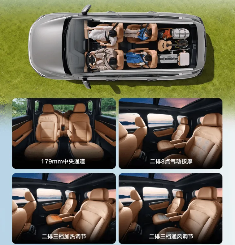6 座版本配備獨(dú)立第二排座椅,支持前后滑動(dòng)與靠背調(diào)節(jié),并配備獨(dú)立扶手,部分車型還提供通風(fēng)、加熱、按摩功能。