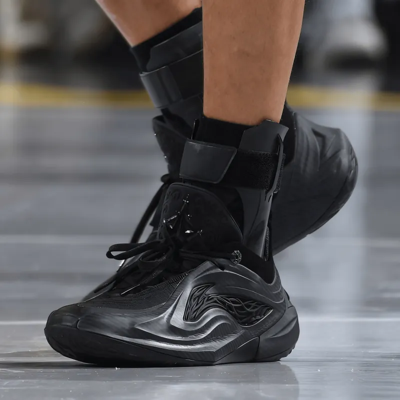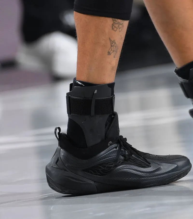 值得一提的是,賽前熱身中,庫里首先穿著JB4進行訓(xùn)練,隨后穿上護踝、換上UA CURRY Series7準備比賽,但最終敲定穿著JB4進行比賽。