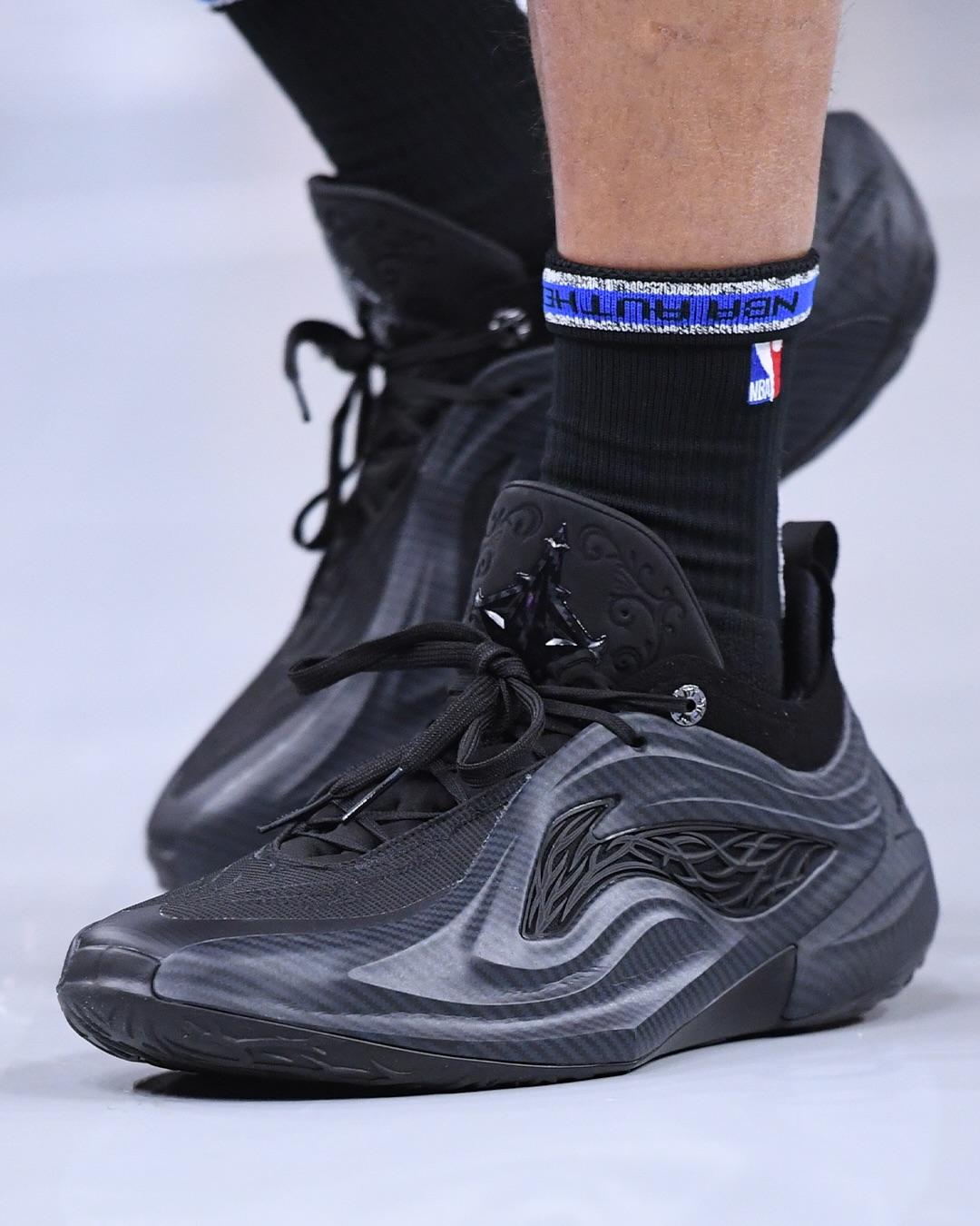 比賽中,穿J穿庫里上腳黑騎配色李寧 JB4。最終