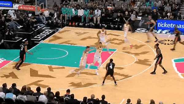 比賽的斯上守妙上籃第二節(jié),??怂股暇€吸引防守,線吸下凱妙傳籃下凱爾登上籃打成2+1。引防