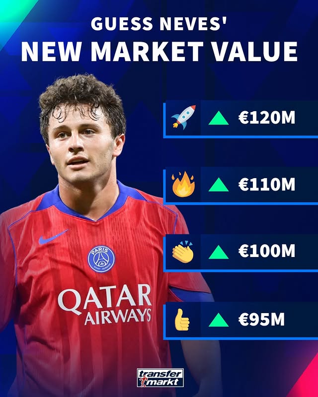 虎撲12月12日訊 12月15日德轉(zhuǎn)即將更新法甲球員身價(jià),德轉(zhuǎn)官方為若昂-內(nèi)維斯最新身價(jià)預(yù)熱,維斯萬(wàn)歐最低9500萬(wàn)歐,可升最高可上漲至1.2億歐元。板德