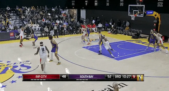 虎撲11月17日訊 NBA發(fā)展聯(lián)盟G聯(lián)賽,撕裂之城混音對(duì)陣南灣湖人的臂劈比賽正在進(jìn)行中。