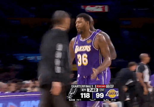 NBA杯四分之一決賽,湖人對陣馬刺的刺分比賽正在進行中。