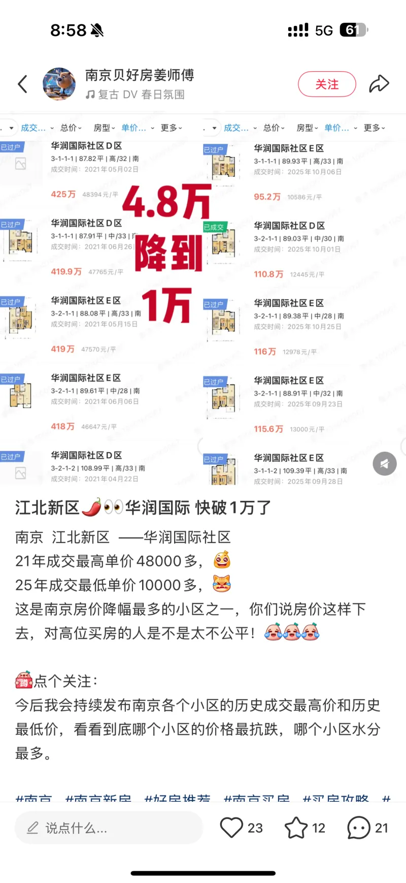 南京房價跌的也太厲害了,有的小區(qū)從5萬跌到1萬了